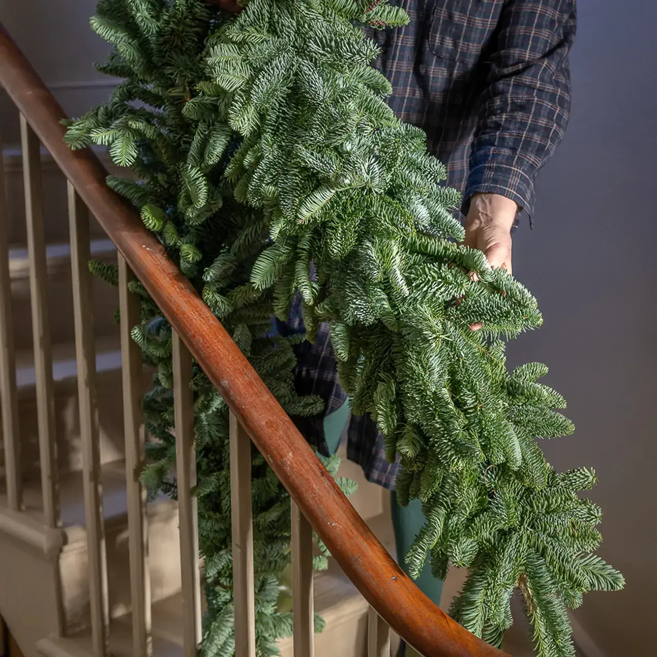 Beautiful rope garland for the perfect finishing touch to your Christmas celebrations. Make that ‘wow’ moment you are looking for, with our sustainable and hand cut Noble Fir Rope Garland sweeping up a banister or as a big swag on the fireplace. Dress it up with lights and baubles to create a striking display. As these garlands are made to order they can be as long as required. We made one 30m long for a client last year!