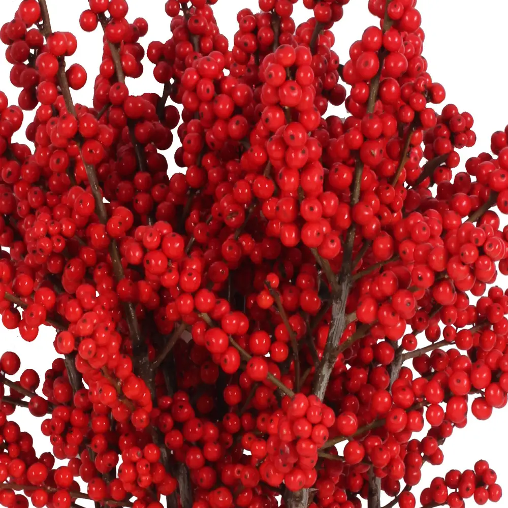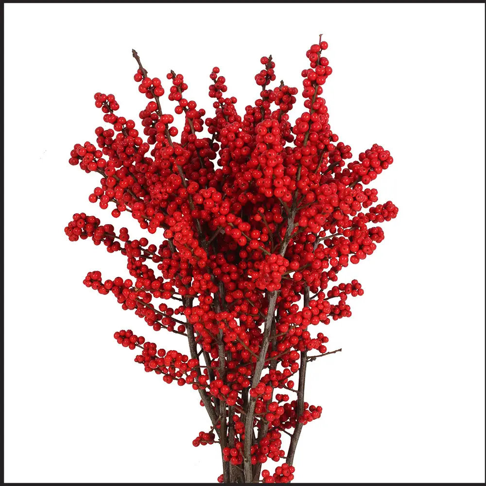 Winterberry holly is aptly named for the abundant shiny red berries that adorn this small tree throughout the winter, made all the more striking when the deciduous leaves have dropped. It complements most flower arrangements. It works particularly well with Eucalyptus .